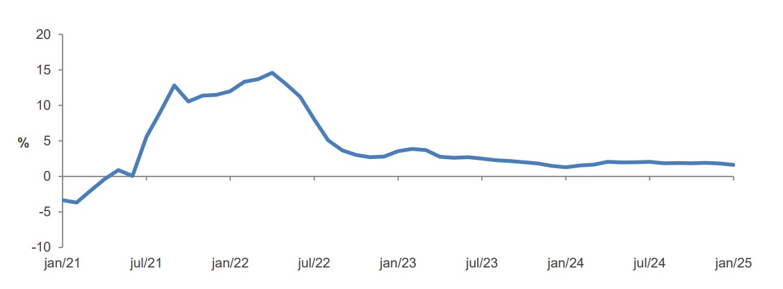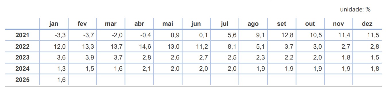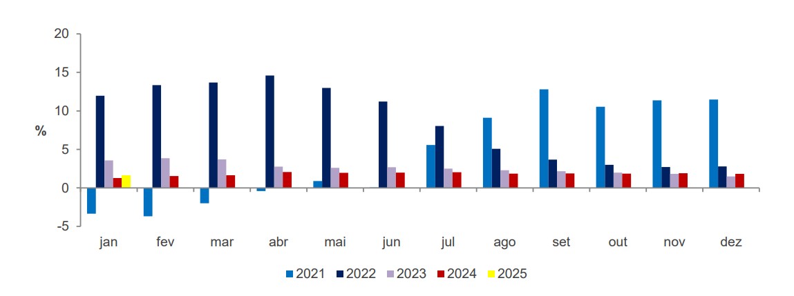 Em janeiro de 2025, o IAE apresentou um aumento de 1,6% face ao mês homólogo do ano anterior.