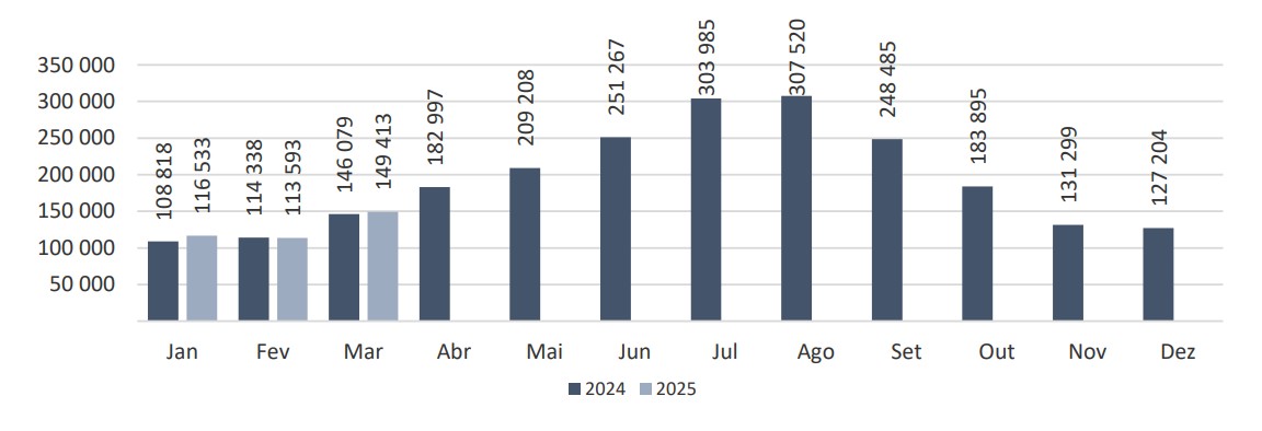 Movimento de Passageiros Aéreos – março 2025