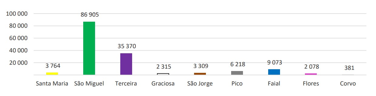 Por ilha, as que apresentaram variação homóloga mensal positiva no desembarque de passageiros aéreos foram: Pico (15,4%), São Jorge (12,9%), Faial (6,5%), Corvo (5,8%), Terceira (2,8%) e São Miguel (1,5%). Em sentido inverso, Graciosa (-9,1%), Santa Maria (-7,9%) e Flores (-5,6%) apresentaram variação homóloga mensal negativa no desembarque de passageiros.