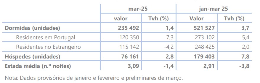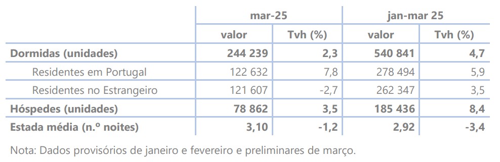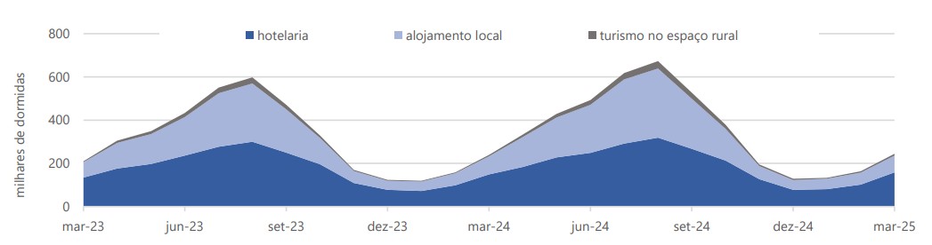 No primeiro trimestre de 2025, registaram-se 340,8 mil dormidas, valor superior em 6,6% ao registado no período homólogo.
