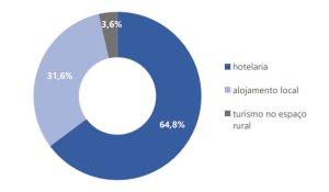 Considerando o conjunto dos estabelecimentos de alojamento turístico, a hotelaria concentrou 64,8% da totalidade de dormidas (158,3 mil dormidas), seguindo-se o alojamento local com 31,6% (77,1 mil dormidas) e o turismo no espaço rural com 3,6% (8,7 mil dormidas).