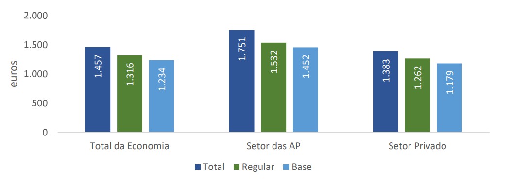 Nota: A “remuneração bruta mensal média total” inclui todas as componentes das variáveis Natureza da remuneração (SS) e Tipo de remuneração (CGA).