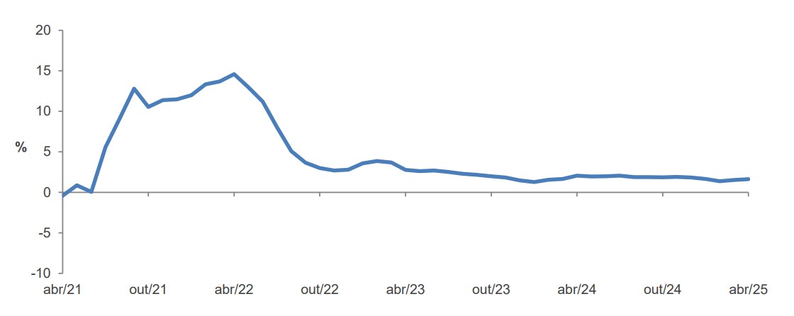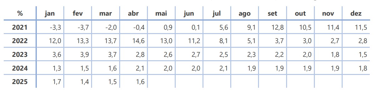 Em abril de 2025, o IAE apresentou um aumento de 1,6% face ao mês homólogo do ano anterior.