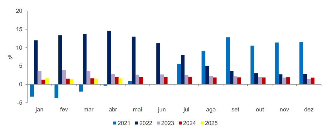 Figura 1 – Evolução do IAE-Açores 2021 – 2025 (taxa de variação homóloga, em %)