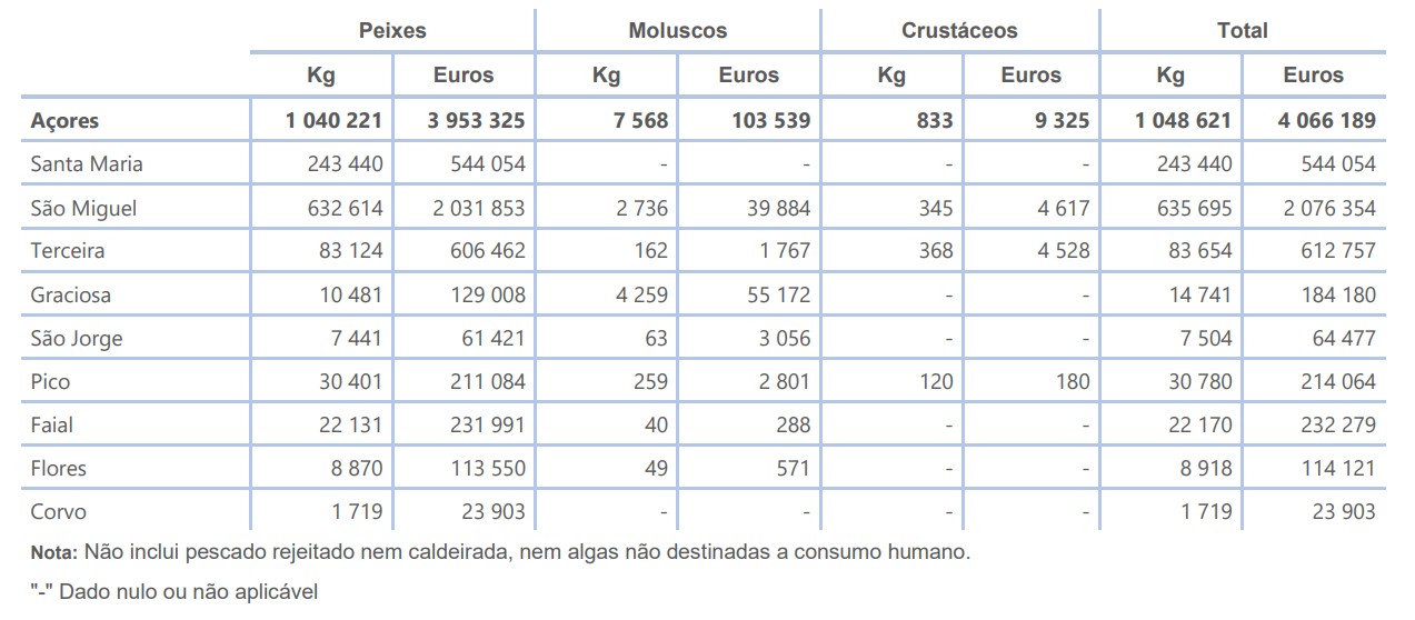 ¹ Não inclui pescado rejeitado nem caldeirada, nem algas não destinadas a consumo humano.