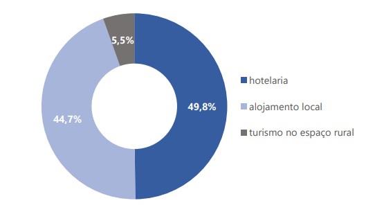 Considerando o conjunto dos estabelecimentos de alojamento turístico, a hotelaria concentrou 49,8% da totalidade de dormidas (260,1 mil dormidas), seguindo-se o alojamento local com 44,7% (233,3 mil dormidas) e o turismo no espaço rural com 5,5% (28,5 mil dormidas).