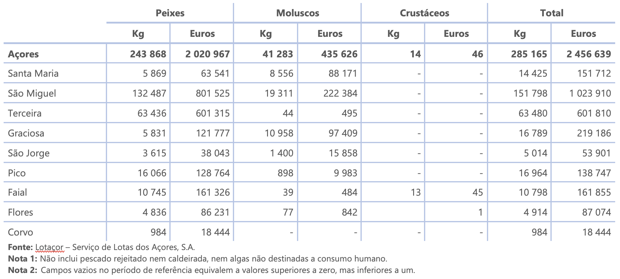 valor, e tem por base a informação disponibilizada pela Lotaçor – Serviço de Lotas dos Açores, S.A..