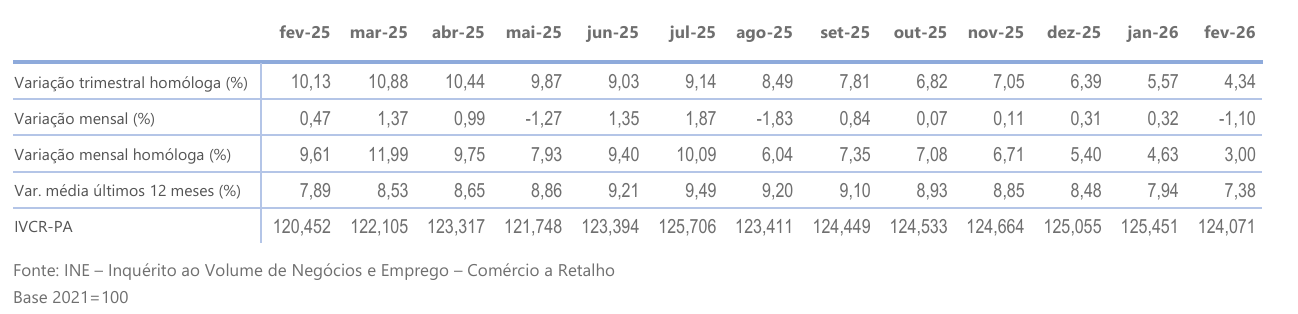 Índice de Vendas do Comércio a Retalho – Produtos Alimentares – fevereiro 2026