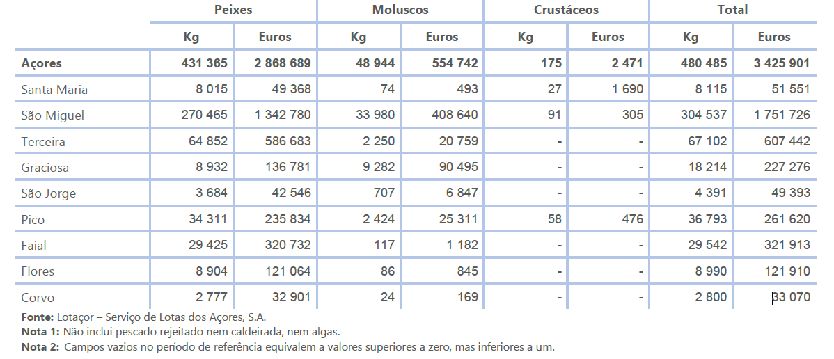 A informação divulgada apresenta um retrato atual do setor regional da Pesca, das descargas em lota em volume e valor, e tem por base a informação disponibilizada pela Lotaçor – Serviço de Lotas dos Açores, S.A..