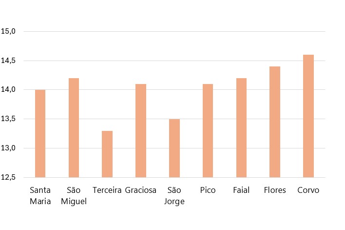 O valor da temperatura média do ar variou entre 13,3 ºC na ilha Terceira e 14,6 ºC na ilha do Corvo; a temperatura mínima mais baixa foi 5,6 ºC, na ilha de Santa Maria, enquanto a máxima mais elevada foi 20,0 ºC, na ilha das Flores.