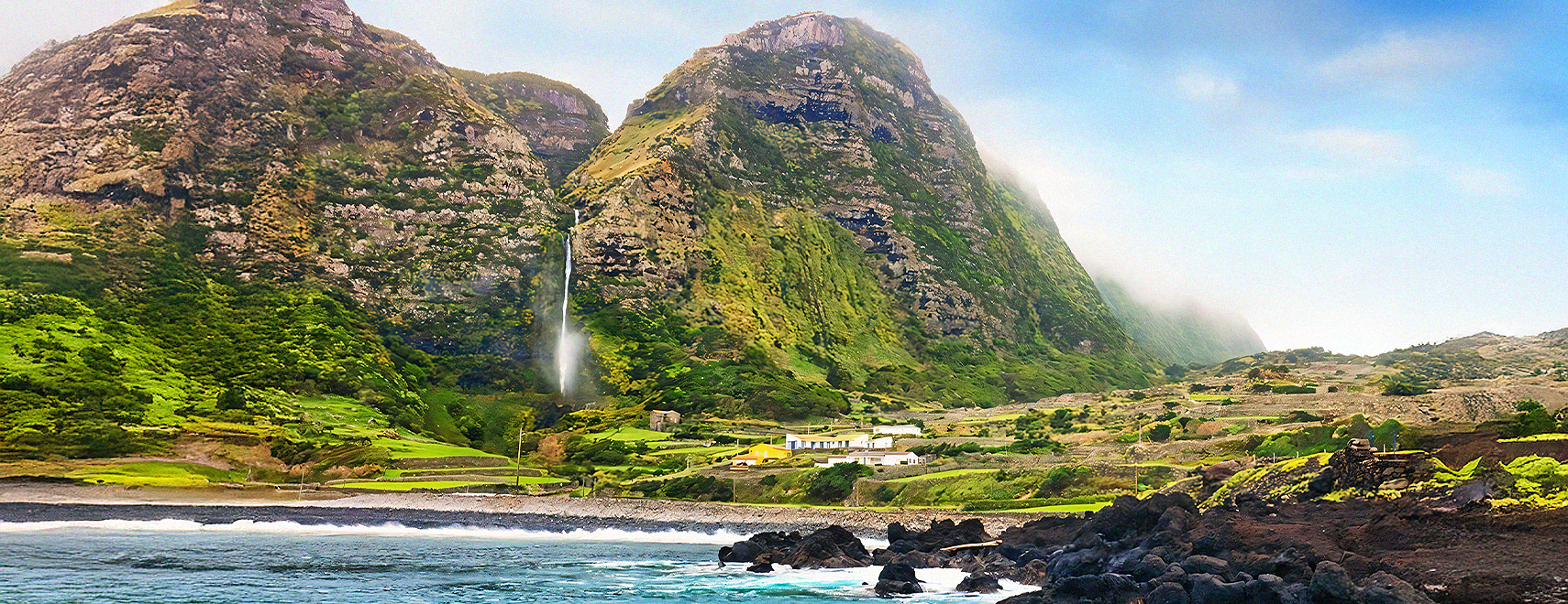 É a ilha mais ocidental não só do arquipélago, mas também da Europa. Caracteriza-se pela abundância de quedas de água e lagoas, e uma vegetação exuberante. Classificada pela UNESCO como Reserva da Biosfera, esta ilha é também conhecida pela Rocha dos Bordões, um dos monumentos naturais mais famosos dos Açores.